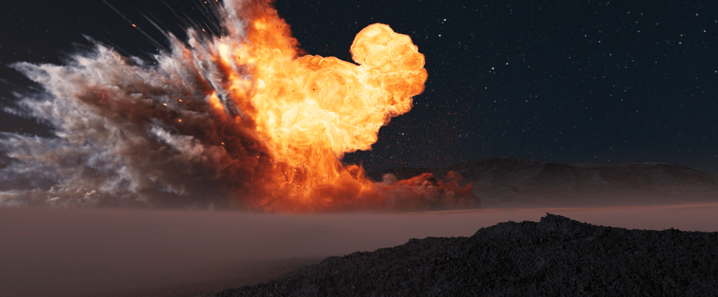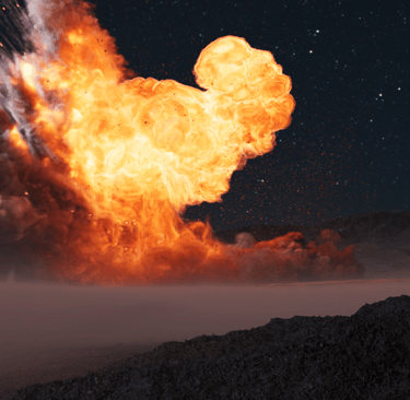 Early development explored multiple approaches to simulate the meteor impact and debris motion; however, initial destruction methods did not produce convincing fragmentation or interaction with pyro effects. To improve realism, a unified workflow was developed where destruction, shockwave, and layered smoke simulations are driven directly by the impact event and debris forces.